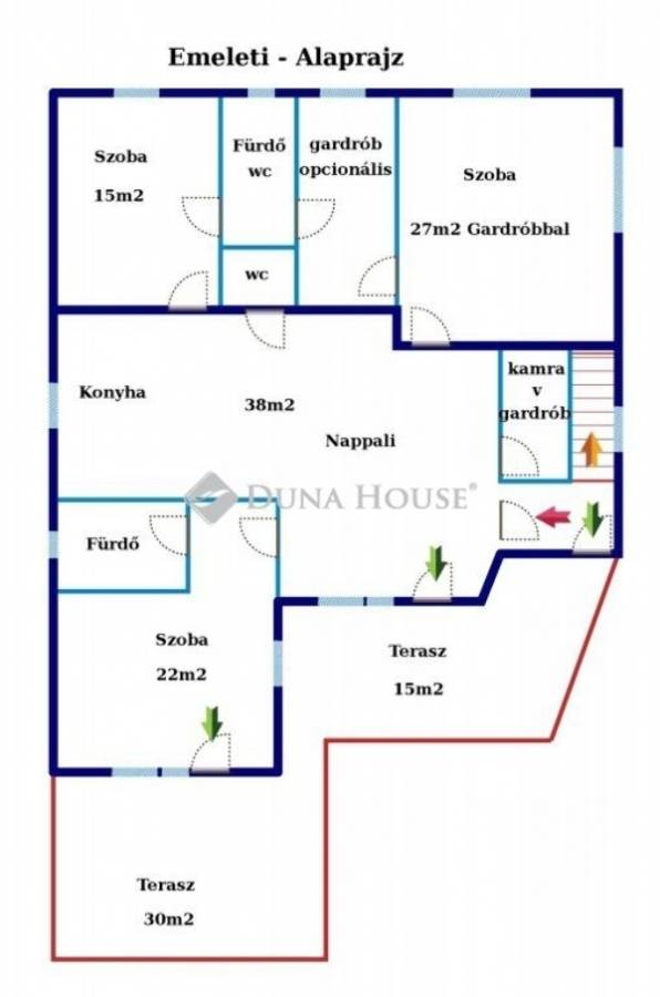 Az emelet 165m2 teraszokkal együtt.
