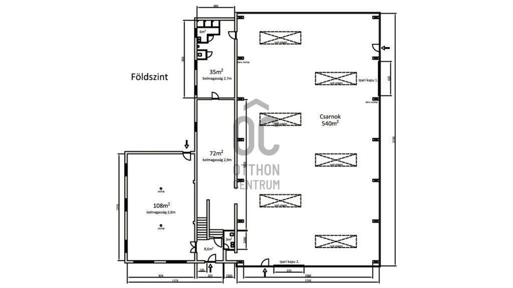 Eladó egy 535nm-es ipari RAKTÁR/CSARNOK, amely acél gerendás, könnyűszerkezettel épült, de a hozzátartozó, irodái és szociális helyiségei PORFIX TÉGLÁBÓL (Ytong) készültek, ami még összesen 434nm-t tesz ki, 1691NM-ES TELKEN!