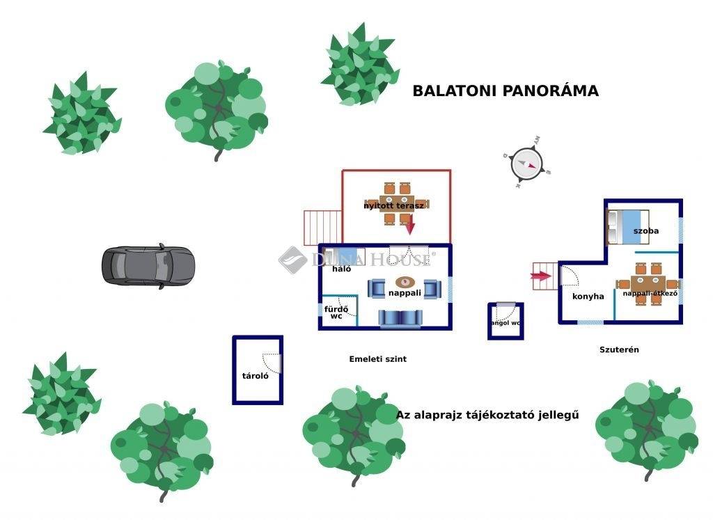 PANORÁMÁS telken eladó lakóház! 1079 nm-es telken egy 2 szinten elhelyezkedő, nyaralóból frissen átminősített lakóingatlan, Balatonakarattya és Balatonkenese találkozásánál.Az ingatlan szuterénes kialakítása tégla szerkezetű, melyre óriási teraszt alakítottak ki egy könnyűszerkezetes ráépítéssel.A házban víz, villany, csatorna bevezetve, gáz az utcában található. Az ingatlant most minősítették át sikeresen lakóingatlanná, így kedvező lehet akár a családos támogatások igénybevételéhez.A terület nyugodt, csendes. Sok fát, bokrot és egyéb zöldnövényzetet gondoztak az évek folyamán, így ezeket ezt Önnek csak élveznie kell, nem kell megvárnia míg megnőnek, hogy csodás levegőt, intim közeget teremtsenek. Kerti csapról öntözhet, a kertben kialakított angol wc és egy udvari tároló is segíti a kerti bulik könnyed lebonyolítását, ráadásul a régi tartályos zuhanyzót is használhatja, a kertben kialakított grillező használata után.Amennyiben új házat tervezne inkább, erre is csodálatos megoldás lehet a vásárlás, a későbbi tervek megvalósításáig is rendezett, jó körülmények között nyaralhat. Hívjon hát bátran, nem fog csalódni, ha szereti a rendezett környezetet.