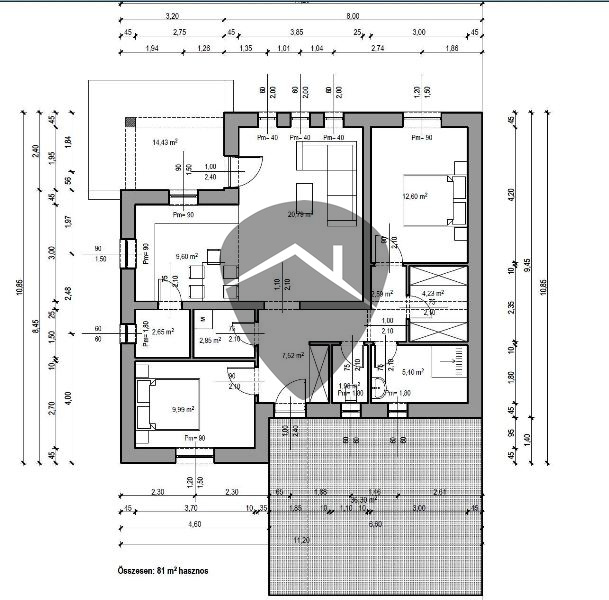 A nappali + 3 szobával rendelkező ingatlan alapterülete nettó 80 m2.
