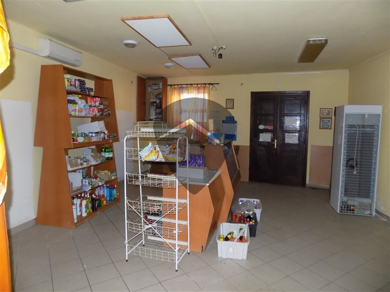 A közművesített ingatlanon található 2 nagyobb (egy 80m2-es, és egy 82m2-es), egy kisebb (38m2-es) lakás, egy 100 fő befogadására alkalmas étterem, mely már 15 éve nem működik, egy kis vegyesbolt, ami egy esztendeje nem fogad vevőket, és egy pékség, amely 130m2-es, és 6 éve nem készít már finomságokat. A pékség végében, még található egy garázs.