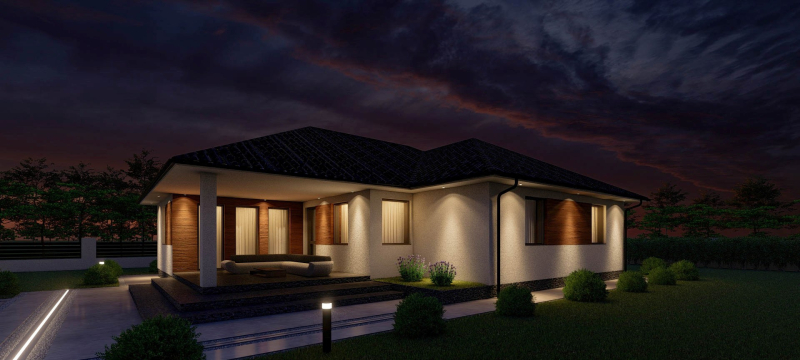 A praktikusan tervezett házban a szobákon kívül tágas és napfényes amerikai konyhás nappali, gardrób, kamra, szélfogó, közlekedő, fürdőszoba, háztartási helyiség és egy külön mellékhelyiség is kialakításra kerül.