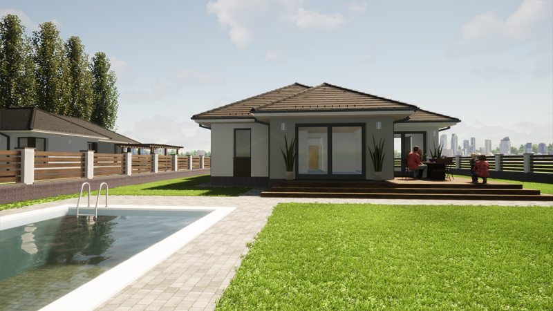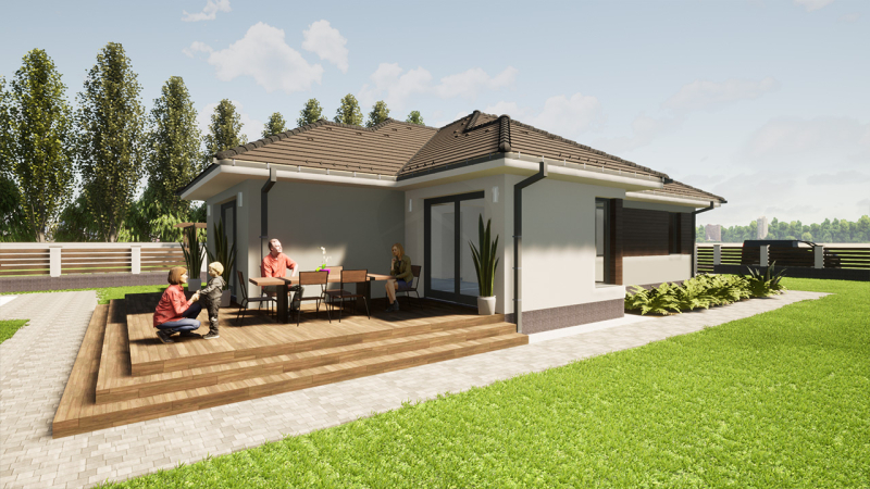 Továbbá az ár tartalmazza a komplett tervezői díjat(gépészet, metszetek, statika, energetika, engedélyek), plusz egy inverteres(hűtő-fűtő) klímát!
