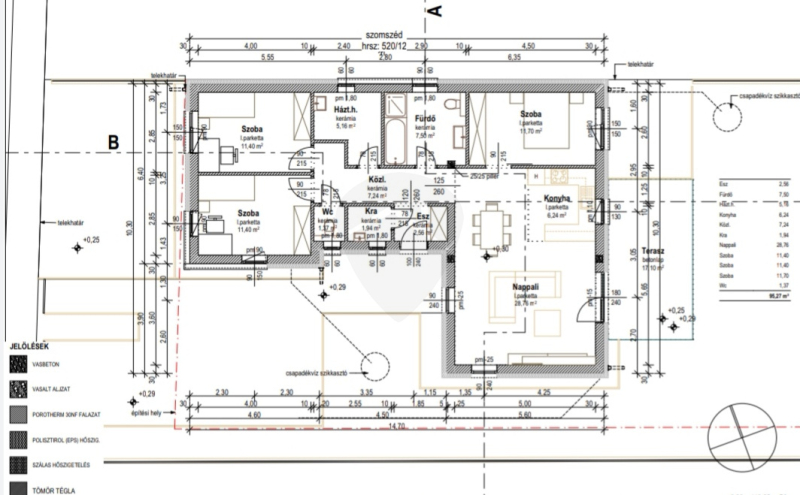 A jelenlegi árajánlatban az otthon melegéről gáz-cirkó kazán gondoskodik, padlófűtéses hőleadással, de a fűtésrendszer is az építtető igényei alapján módosítható!