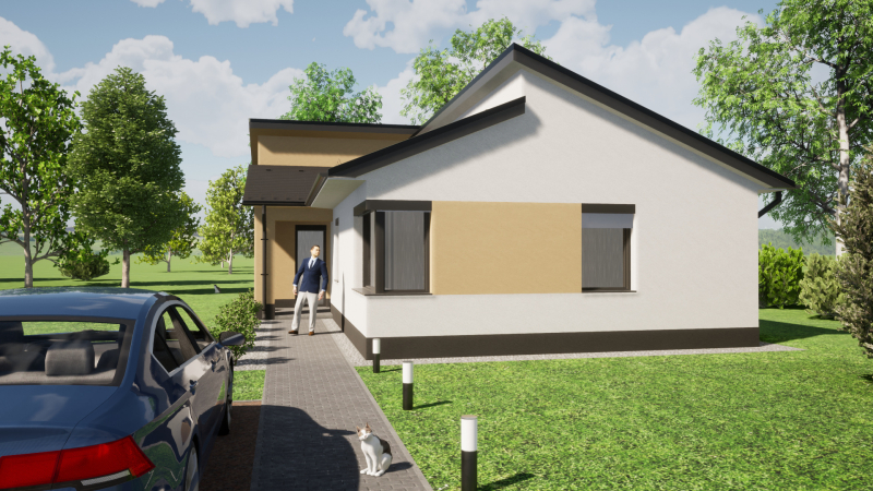 A praktikusan tervezett házban a szobákon kívül tágas és napfényes amerikai konyhás nappali, gardrób, kamra, szélfogó, közlekedő, fürdőszoba+wc, háztartási helyiség és külön mellékhelyiség is kialakításra kerül.