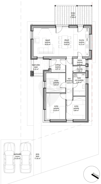 A nappali + három szobával(vagy akár 4 szobával) rendelkező ingatlan alapterülete nettó 92 m2 + 18 m2-es terasz, mely igény szerint módosítható.