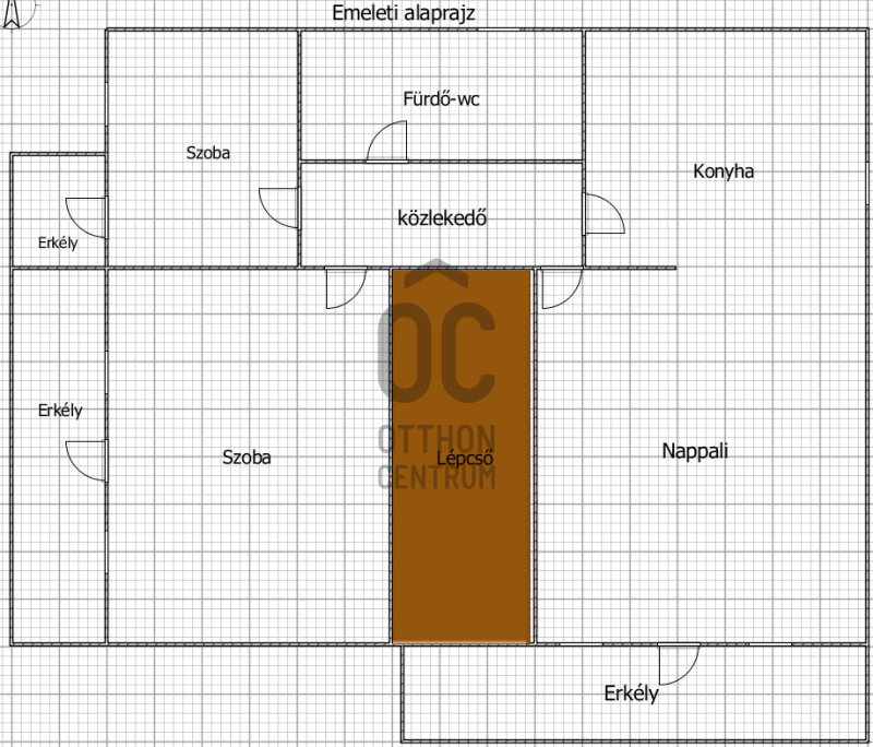 2 szoba, konyha, nappali, fürdőszoba-Wc (kádas) közlekedő helyiségeket alakítottak ki. ( Minden szobához erkély tartozik.)
