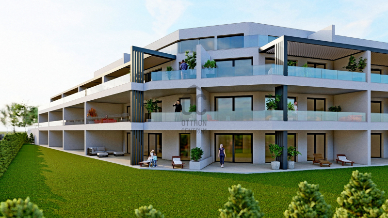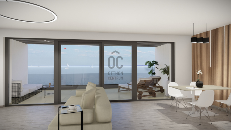 Mintegy 500m-es saját partszakasszal rendelkező 85 lakásos társasházban kínálunk eladásra Balatonszemesen