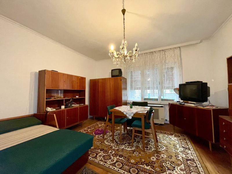 Edve község egyik csendes mellékutcájában kínálom megvételre egy 1187 m2-es telken elhelyezkedő, 95 m2 alapterületű családi házat, amely két hálószobából, közlekedőből, konyha és a hozzá kapcsolódó spejzból, fürdőszoba-wc, kamrából áll. A ház az 1960-as években épült, fa nyílászárókkal és fa szerkezetű redőnyökkel rendelkezik, a fűtésről a szobákban gázkonvektor és fa tüzelésű kályha is gondoskodik. A meleg víz ellátást villanybojler biztosítja. A tetőhéjazat új bádogos fedést kapott az elmúlt években. A kamra helyiségből egy 12 m2-es pincébe, valamint a tetőtérbe fa lépcsőn tudunk bejutni. Az ingatlan statikailag jó állapotú nem repedt és nem vizes.
