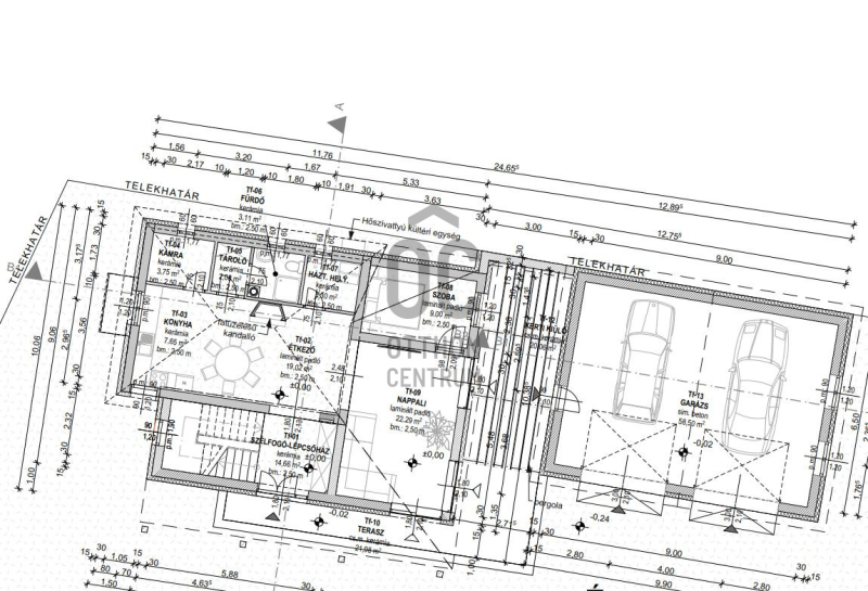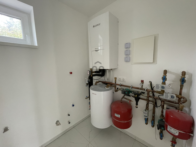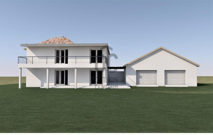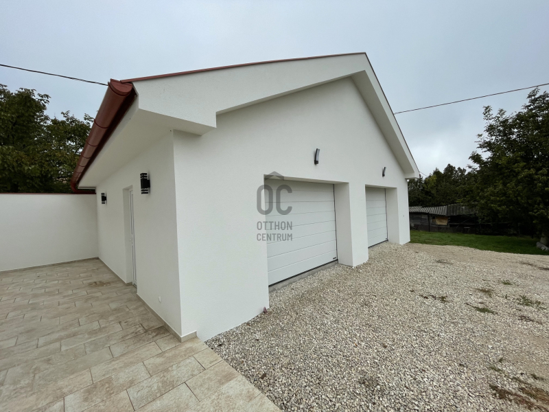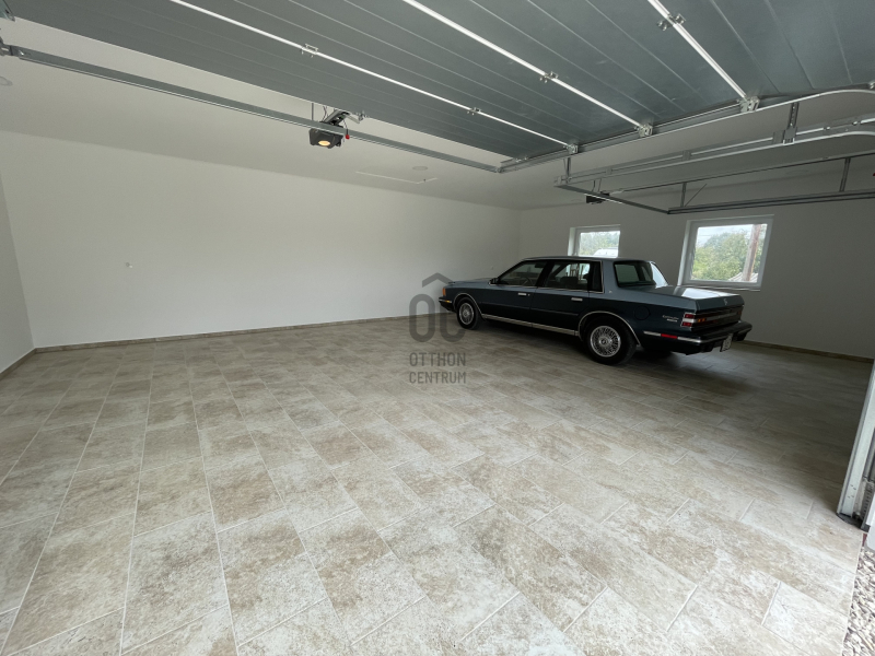 A házhoz tartozik egy 60 m²-es, padlófűtéses garázs, amely 2 gépkocsi számára nyújt kényelmes parkolást.