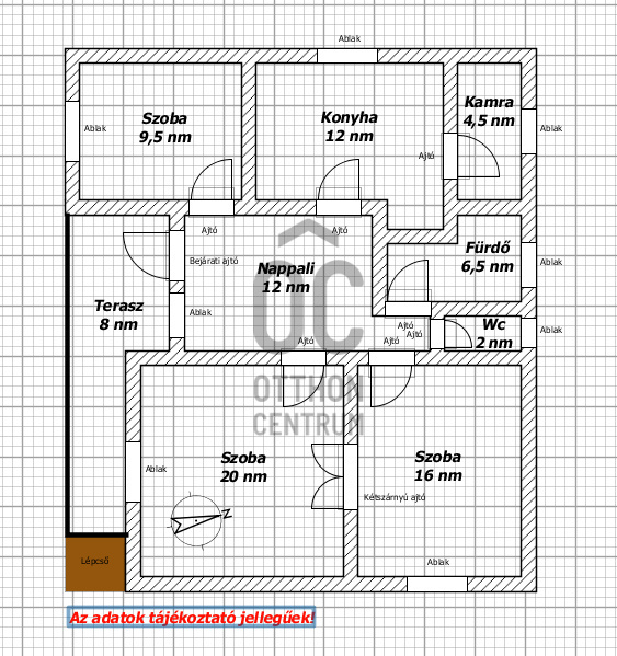 A házba egy fedett teraszon keresztül juthatunk. Belépve egy központi, kellően világos nappaliba jutunk, ahonnan 3 kényelmes méretű szoba (ebből az egyik lehet akár gyerekszoba, mivel a kettő között átjárás van) , konyha, fürdőszoba és külön toilett nyílik, a konyhához pedig egy kamra is tartozik. A tetőtér beépítésével pedig akár 2 generációssá vagy nagyobb családok álmává is válhat. Ez már csak a leendő tulajdonos fantáziájára és kreativitására van bízva! Az otthon melegéről gáz-konvektor gondoskodik.
