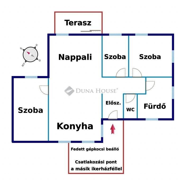 Helyiségeket tekintve a jelenlegi tervek szerint kialakításra kerül, 3 darab hálószoba, egy nagyméretű amerikai-konyhás nappali, előszoba és egy fürdő külön WC-vel. Az ingatlanhoz tartozó egyik szoba igény esetén belső garázzsá alakítható, illetve egy fedett gépkocsi beálló.