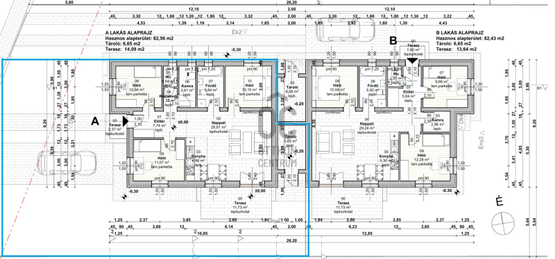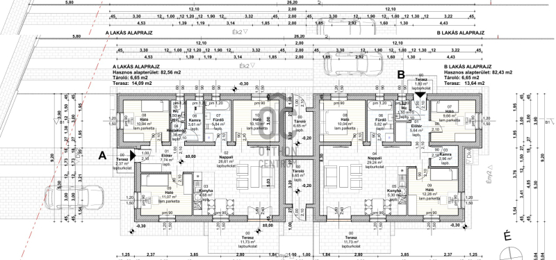 • nettó 82.56 m2 + 6.65 m2 + terasz 11.73 m2