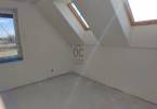 A 77,81 m2-es 4 szobás lakás földszinti központi magját egy 26,79 m2 alapterületű nappalikonyha étkező egység alkotja. A lakás megközelítése a telek oldalkertje felöl, d-ny-i irányból történik fedetten. A tágas szélfogóban nagy felületű tároló szekrények elhelyezése biztosítható. A lakóelőtérből nyíló háztartási helyiség mosógéppel, hőszivattyúval, mosdóval és WC-vel van felszerelve. Lakóelőtérből közelíthető meg a nappali és a 2 soros konyha. A 17 m2-es nappali egy légtérben van a konyha-étkezővel, a nappalihoz egy közel 12 m2 alapterületű fedett terasz kapcsolódik. A hőszivattyú kültéri egységeit a garázs egyik falához kapcsolódó rácsos fal mögött helyezzük el. A tetőtérbe kis alapterületű , gipszbeton szerkezetű keményfa burkolatos húzott karú lépcső vezet fel. A lakáshoz szerelt, hőszigeteletlen gépkocsibeálló kapcsolódik 15 cm-es falvastagsággal és 15 cm-es födémvastagsággal. A tetőtérben 2 szoba nyílik egy 3 m széles társalgó szobából. A társalgóból és az egyik hálószobából kijuthatunk egy fedett, 9 m2 alapterületű loggiára. A tetőtéri fürdőszobában kádat és tusolót is elhelyeztünk.
