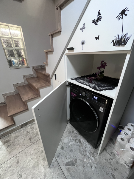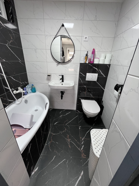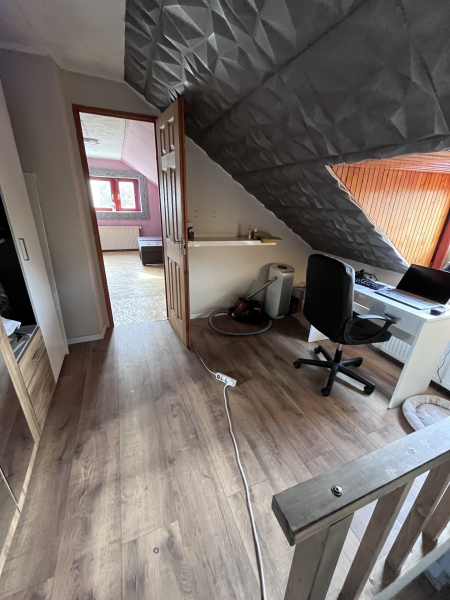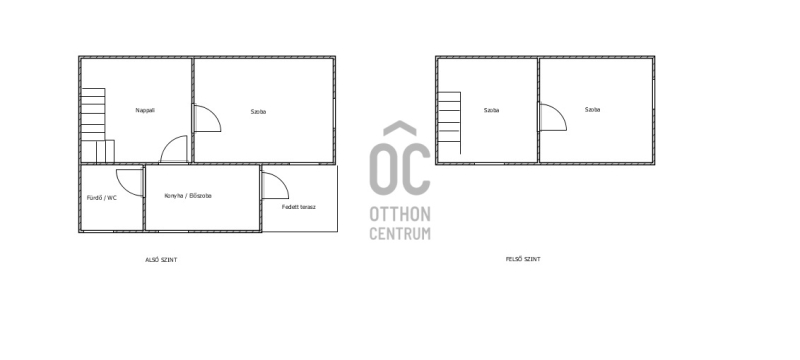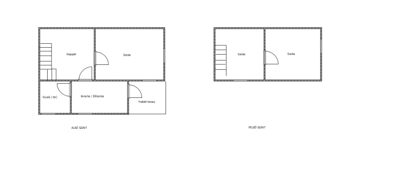 Nappali + 3 szobás: alsó szinten van a nappali, konyha, fürdőszoba és wc, és egy szoba, a felső szinten van kettő egymásból nyíló szoba