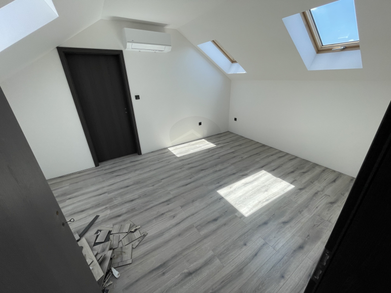 Az amerikai konyhás nappali és az erkély csodálatos panorámát nyújt a hegyvidékre, amitől igazán különlegessé válik. Az ingatlan 150 négyzetméteres, kétszintes, modern kialakítású. Tartalmaz egy igényes amerikai konyhát, nappalit étkezővel, beépíthető gardróbokat, öt szobát és egy fürdőszobát, külön nyíló WC-vel. Az erkély 5 négyzetméteres, és a lakáshoz tartozik egy zárt udvari parkoló is. Az ingatlan nem bútorozott, így új tulajdonosa saját ízlése szerint alakíthatja ki.