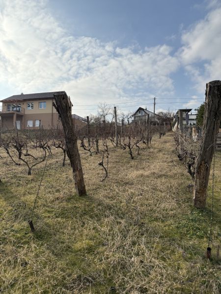Jelenlegi állapot: A telek szőlővel van beültetve, de most van megosztás alatt, így akár egyben is megvásárolható a másik utcára nyíló telekkel ( ami 1241 nm ) együtt!