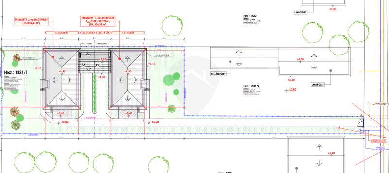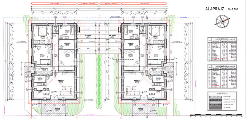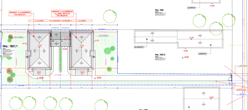 Az ingatlanok NEM érintkeznek egymással, hiszen csak a gk beállók kötik őket össze! Külön helyrajzi számmal fognak rendelkezni, egyedül a beálló lesz osztatlan közös tulajdon!
