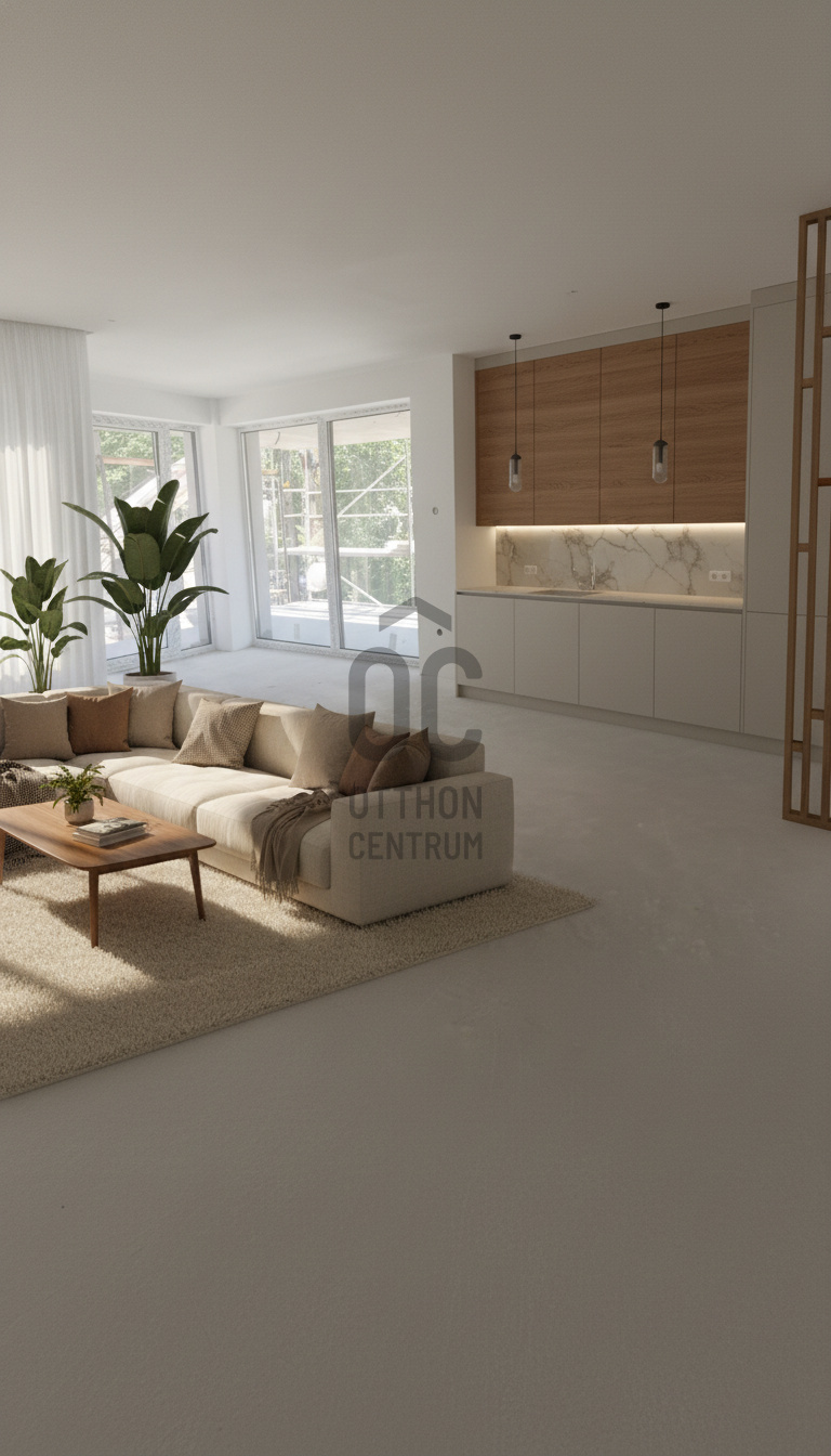- 3 szobás (amerikai konyhás nappali 32,58 nm, szobák 14,59nm valamint 13,57 nm)