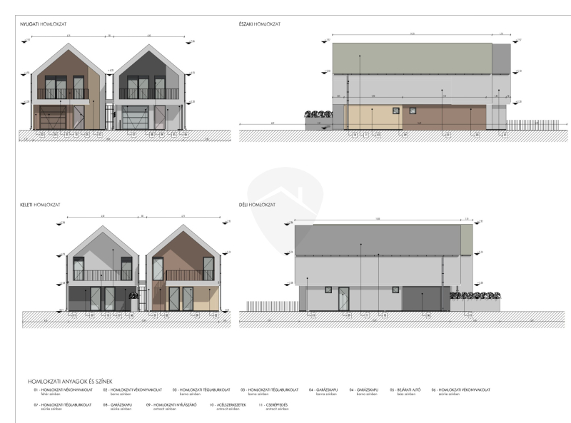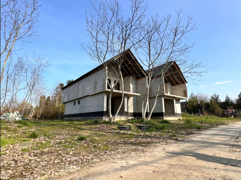 A ház jelenlegi állapotában is megvásárolható, de igény esetén kulcsrakész kivitelben is elérhető, amelynek ára 850.000 Ft/m² / ikerházrész. A mellékelt fotók az aktuális építési állapotot mutatják, míg a látványtervek a végleges, igényes kialakítást szemléltetik.