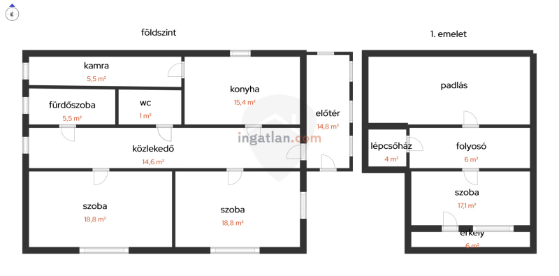 A felső szinten kialakításra került egy közlekedő és egy nagyobb méretű hálószoba, egy további helyiség pedig még kialakításra vár. Értéket növel egy fűtő-hűtő klíma. A ház egy része alatt egy beton burkolatú, száraz pince helyezkedik el, a ház mögött pedig egy szerelőaknával ellátott zárt garázs, valamint több gazdasági épület és tároló található. A 2064 nm-es telek részben elkerített, akár meg is osztható. Jelenleg nincs művelve, bővítési lehetőség adott. Az ingatlan birtokba adása a teljes kifizetés után gyorsan kivitelezhető!