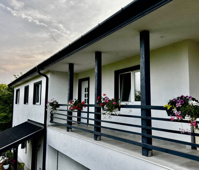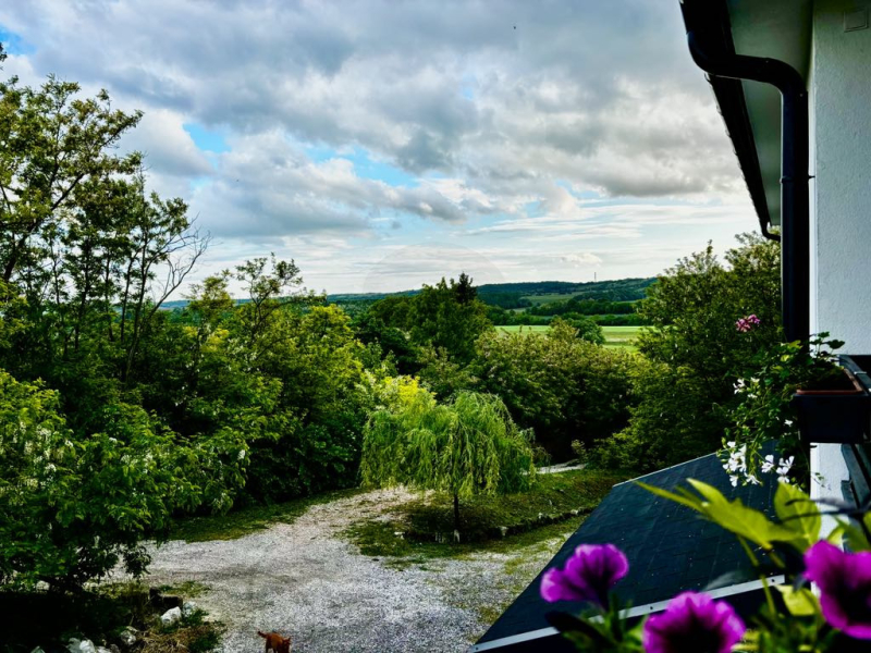 A fenti lakrészből juthatunk ki a teraszra, onnan a hatalmas kertbe, ahol élvezheted a szabadban töltött időt. A panorámás kilátás pedig csak fokozza a hely varázsát, hiszen a természet szépsége minden reggel új élményekkel ajándékoz meg.