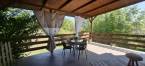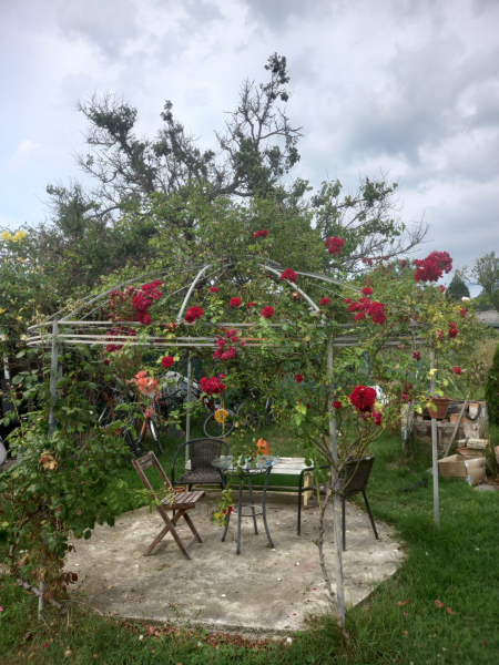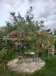 tároló, rózsalugas, néhány gyümölcsfa, diisznövények és füves terület találhatóak.
