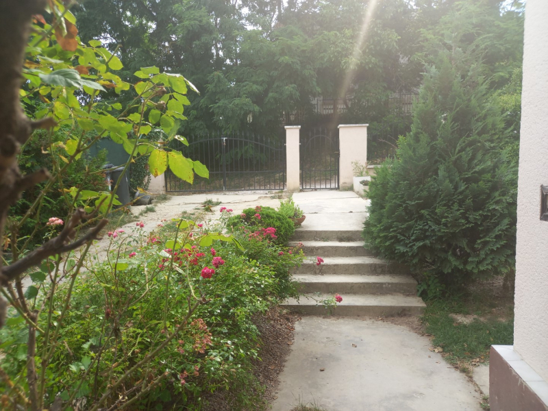 Az 1231 m2-es telek egy kisebb elő- és egy nagyobb hátsó kertrésszel rendelkezik, mely utóbbiban