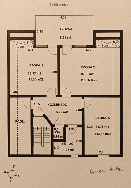 A tetőtérben közlekedő, három hálószoba és egy zuhanykabinos fürdőszoba és padlásszoba található. Két hálószoba közös erkéllyel rendelkezik, ahonnan részpanoráma nyÍlik a Balatonra.