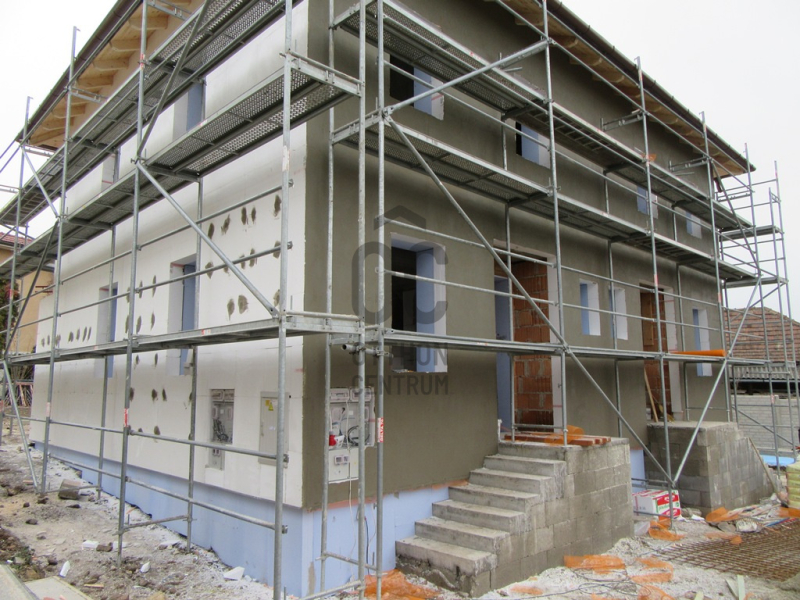 A ház 30-as POROTHERM téglából épül, 15 cm-es DRYVIT szigeteléssel. A nyílászárók háromrétegű üvegezésűek.