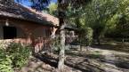 A kerítéssel körbevett, fákkal beültetett telken kis, lakhatásra alkalmas, felújítandó vályogház helyezkedik el.