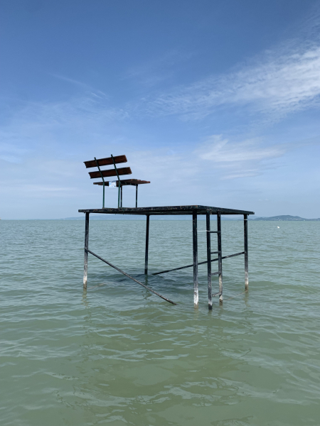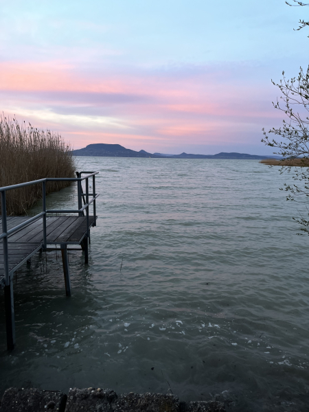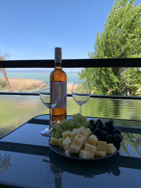 Az épület közvetlenül a Balaton parton helyezkedik el, saját lejáróval és stéggel.