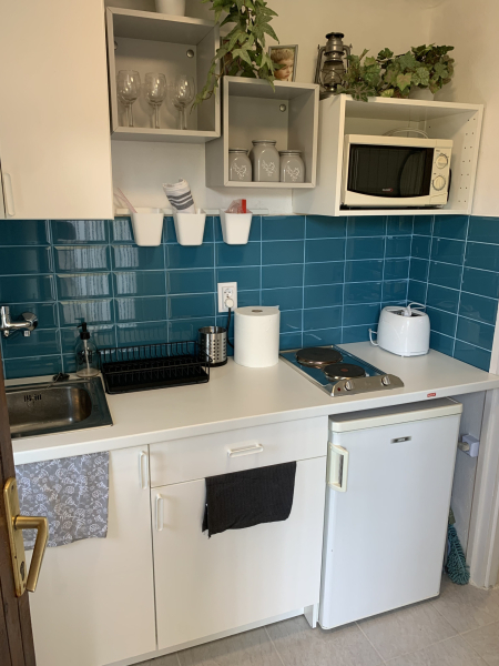 Konyha, nappali fürdőszoba és hálószoba található az ingatlanon belül.