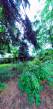 Fákkal, diófával, tusolóval, kerti csappal ellátott.