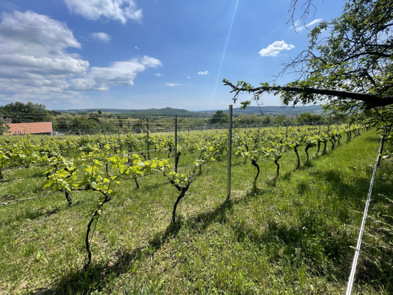 A szőlő tavaly kapott egy teljesen új modern fém támrendszert. a szőlő tőkék kiváló állapotúak ,erejük teljében levő rendszeresen gondozottak. tavalyi szüreten 1600 liter borral ajándékozták meg a jelenlegi tulajdonost.
