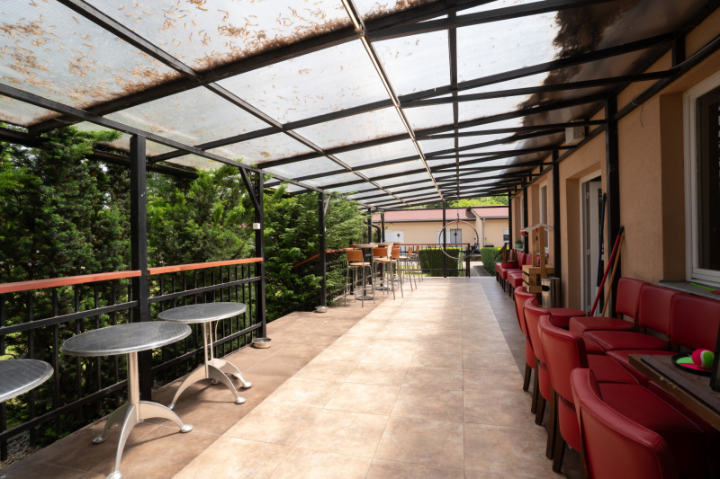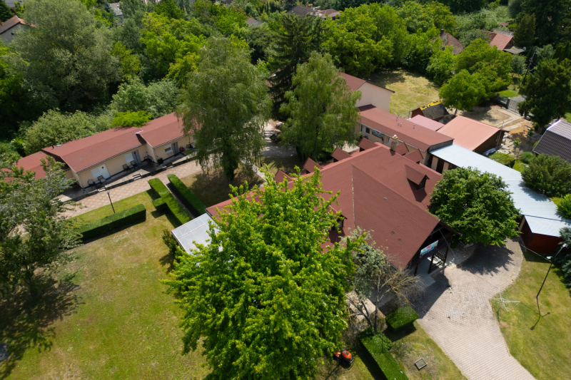 Ez a panzióként és hostelként is működő ingatlan melyhez egy nagy teraszos jól felszerelt étterem is tartozik nem csupán egy épület, hanem egy olyan lehetőség, amely a bővítési lehetőségeket tartogat mivel a 25% beépíthetősége csak 60 %- ban van kihasználva, ezért ideális választás lehet befektetők számára. Az ingatlan alapterülete 855 nm, míg a telek mérete 4744 nm, amely rengeteg lehetőséget kínál a jövőbeli tervek megvalósítására. A terasz mérete 140 nm, ahonnan gyönyörű tóra néző kilátás nyílik, ideális helyszínt biztosítva a vendégek számára a pihenéshez és a kikapcsolódáshoz.