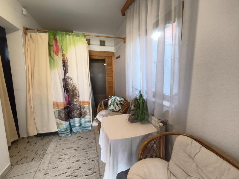 Ebben az épületben A teraszról jutunk be a kis wellnes részlegbe, ahol egy szauna található zuhanyzóval, valamint egy mosókónyha, vagy masszázs helyiség.