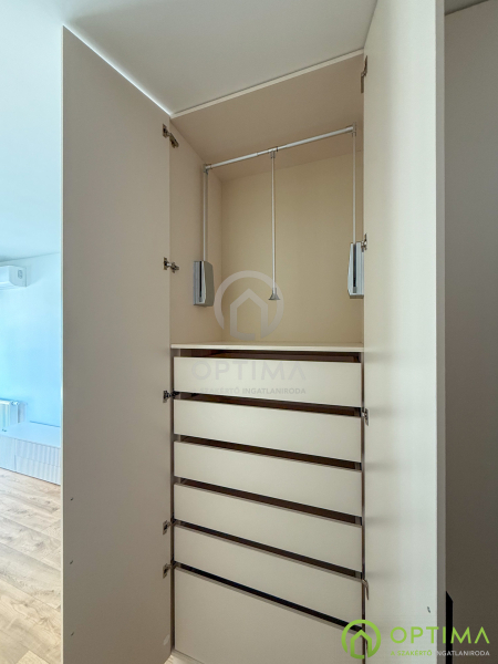 A lakásban magas teljesítményű klímarendszer került kiépítésre (1 kültéri és 3 beltéri egységgel), amely egész évben gondoskodik a komfortos hőmérsékletről. A beépített konyha és egyedi gardróbok magas színvonalú asztalos munkával készültek, és mind az ár részét képezik – így Önnek nincs további költsége vagy szervezési feladata.