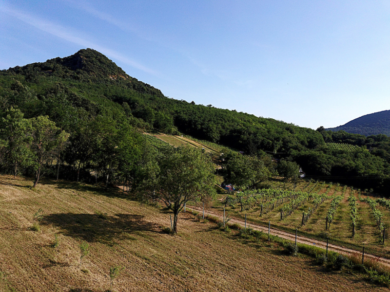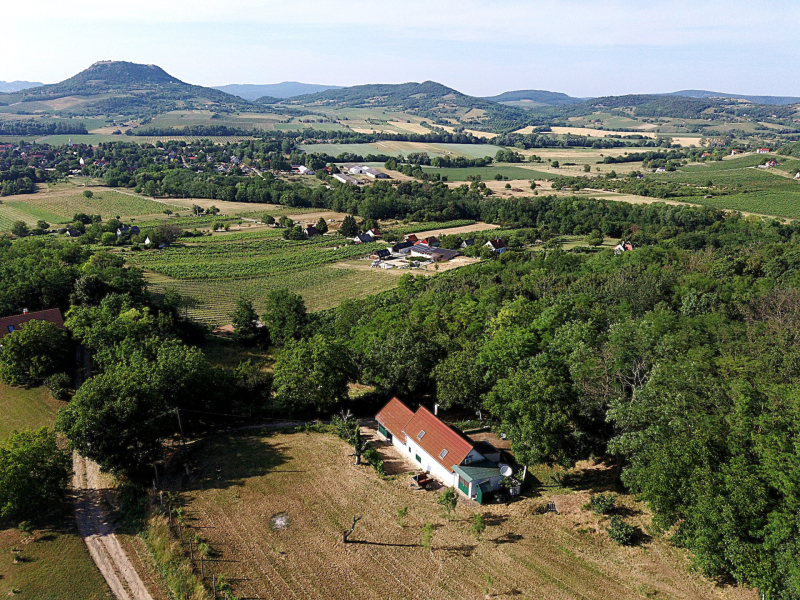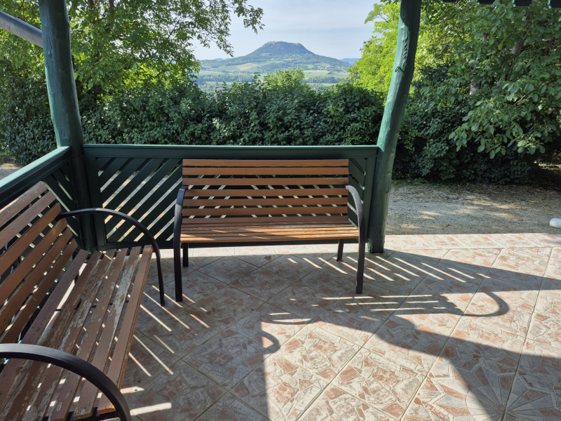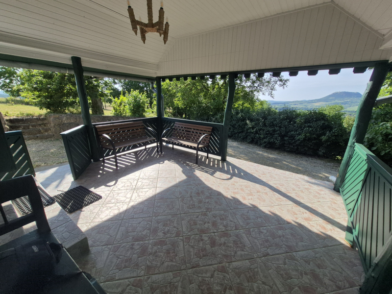 A teraszról mesés panoráma tárul elénk a Csobáncra, de a Gulács, és a Tóti-hegy is gyönyörűen látható.