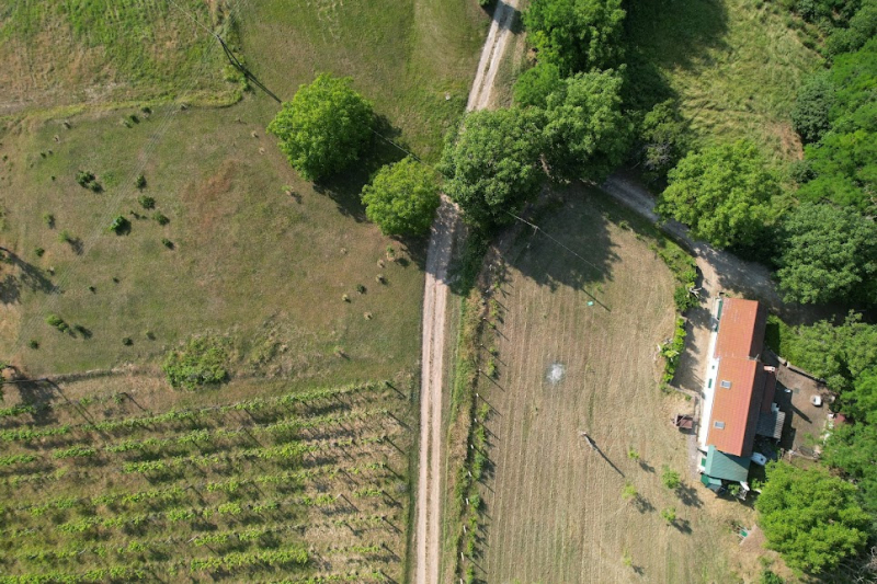 Az ingatlanhoz összesen 9150 nm terület tartozik, mely a tulajdoni lap alapján erdő, rét, szántó, szőlő és gazdasági épület. A szőlő kivágásra került, helyette gyümölcsfák kaptak helyet az épület melletti kert részen.