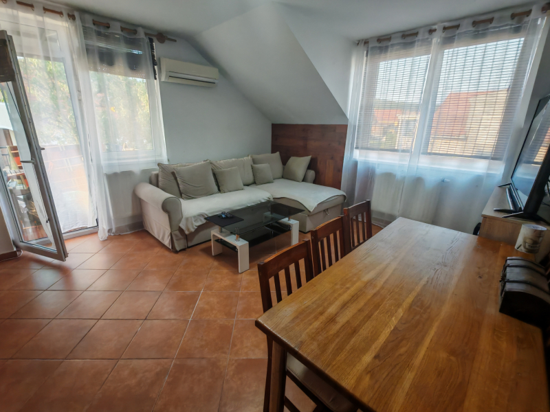 Csendes, forgalomtól mentes utcában , eladó egy kertkapcsolatos jó állapotú lakás, ami nyaralónak is kiválló ! Az ingatlan, amelyet most bemutatunk, egy 58 négyzetméteres lakás, amely minden igényt kielégít. A három szobás elrendezés ideális választás lehet akár fiatal párok, akár kis családok számára, akik a modern életstílust és a kényelmet keresik. A lakás kiváló állapotban van, ami azt jelenti, hogy Önnek semmilyen felújítással nem kell bajlódnia, így azonnal birtokba veheti. Az amerikai konyhás nappali tágas és világos, a beépített bútorok és szekrények pedig maximálisan kihasználják a teret, így minden szükséges dolog könnyen elérhetővé válik. A lakás hűtéséről klíma gondoskodik, míg a fűtés gáz cirkó rendszerrel működik, amely gazdaságos és hatékony megoldást kínál. A terasz, amely 12 négyzetméteres, tökéletes helyszín a reggeli kávézáshoz vagy a baráti összejövetelekhez. A kertkapcsolatos lakás lehetőséget biztosít arra, hogy a szabadban élvezhesse a nyugalmat és a friss levegőt, miközben a csendes környék biztosítja a zavartalan pihenést. A bútorok igény szerint maradnak. A kerti tároló pedig praktikus megoldást nyújt a kertrendezéshez szükséges eszközök tárolására. A környék ellátottsága kiváló, hiszen a közeli bolt, éttermek és szolgáltatások mindössze néhány perc sétára találhatók. A kitűnő közlekedés lehetőséget ad arra, hogy könnyedén elérje a város többi részét, legyen szó autós közlekedésről vagy tömegközlekedésről. A biztonságos és csendes környék ideális választás a fiatal felnőttek számára, akik szeretnék élvezni a vidéki élet nyugalmát, miközben a város közelsége is elérhető számukra. Ez a tehermentes ingatlan nem csupán egy lakás, hanem egy lehetőség arra, hogy egy igazán otthonos környezetben éljen. Ha felkeltettük érdeklődését, bátran keressen minket kérdéseivel vagy további információkkal kapcsolatban. Az ingatlanpiacon való tájékozódás során mi itt vagyunk, hogy segítsünk Önnek a legjobb döntés meghozatalában. Ne habozzon, mert egy ilyen kivételes lehetőség gyorsan elkel!