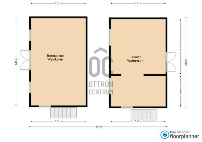 -Az alsó szinten téglaboltíves pince, az emeleten 2 tágas helyiség van.