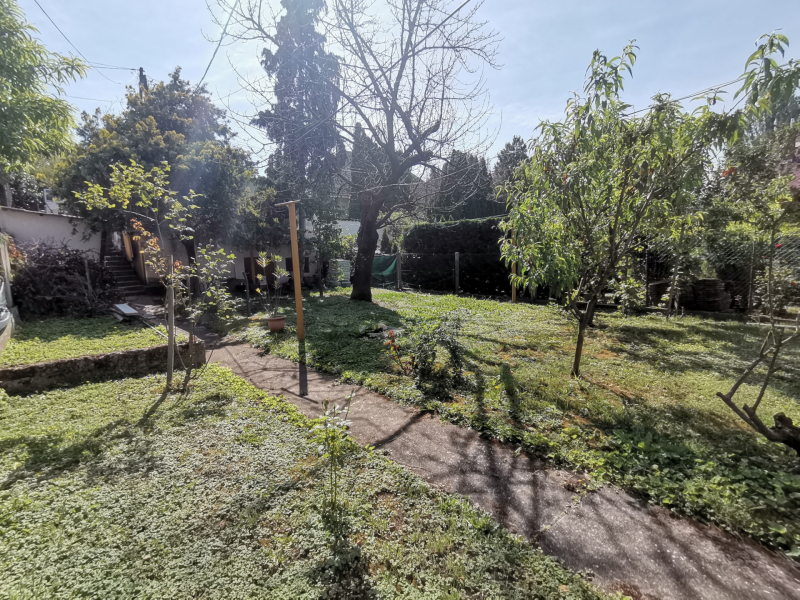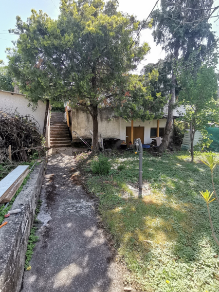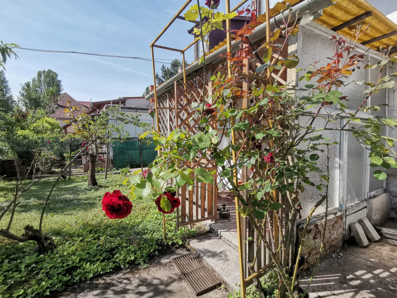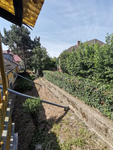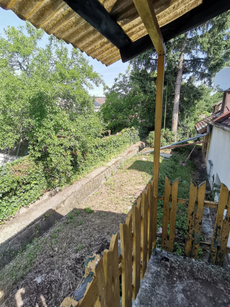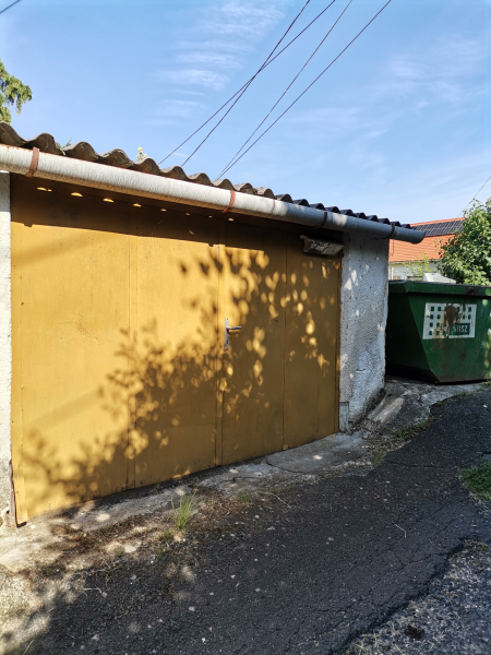 A házat saját kerten keresztül tudjuk megközelíteni, amelyet az utcáról garázs és pince szegélyez. A pince két helyiséges, kb 20 nm területű, ennek a felső szintje a garázs, amely 1 autónak biztosít helyet.