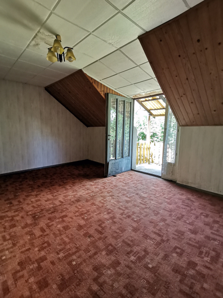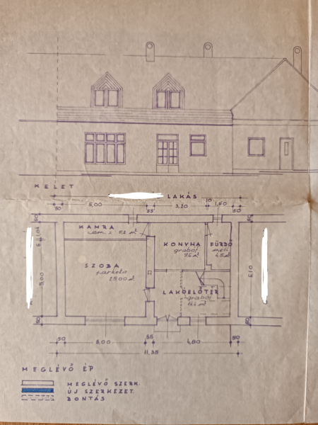 1985-ben emeleti ráépítés történt, ez a lakószint tégla falazatú, a tető palával fedett. Szerencsére sem ázás, sem egyéb gond itt nem mutatkozik, a tér nagyon jó elosztású! Itt 3 hálószoba, egy kis konyha és fürdőszoba lett elhelyezve. A legnagyobb szobának terasza nyílik a hátsó frontra (másnak ide nem nyílik rálátása), itt a hegy felől érkező csapadékvíz elvezető árka van (betonozott), amely mostanában már nemigen szállít nagy mennyiségű csapadékvizet.