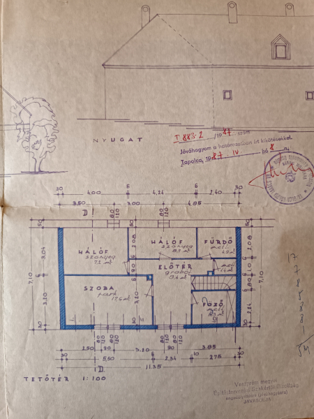 A tulajdoni lapon lakóház, udvar, gazdasági épületként szerepel, per-, és tehermentes. Bruttó 160 nm alapterületű, amely két lakószinten oszlik meg, a nettó teljes hasznos területe 111 nm. A hozzá tartozó kert 359 nm.