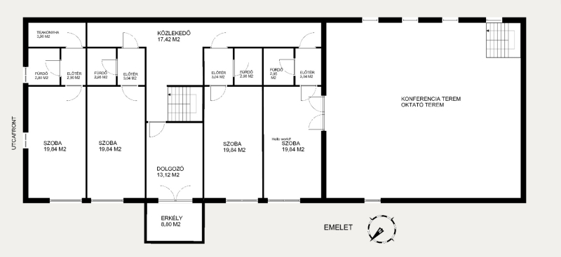 - 8 fürdőszoba/mosdóhelyiség, az emeleti irodák saját mosdóval rendelkeznek,