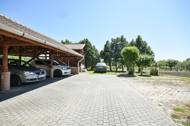 - a pinceszinten található garázsban 1 autó tud parkolni, a kertben 3 autó részére van megépítve fedett beálló