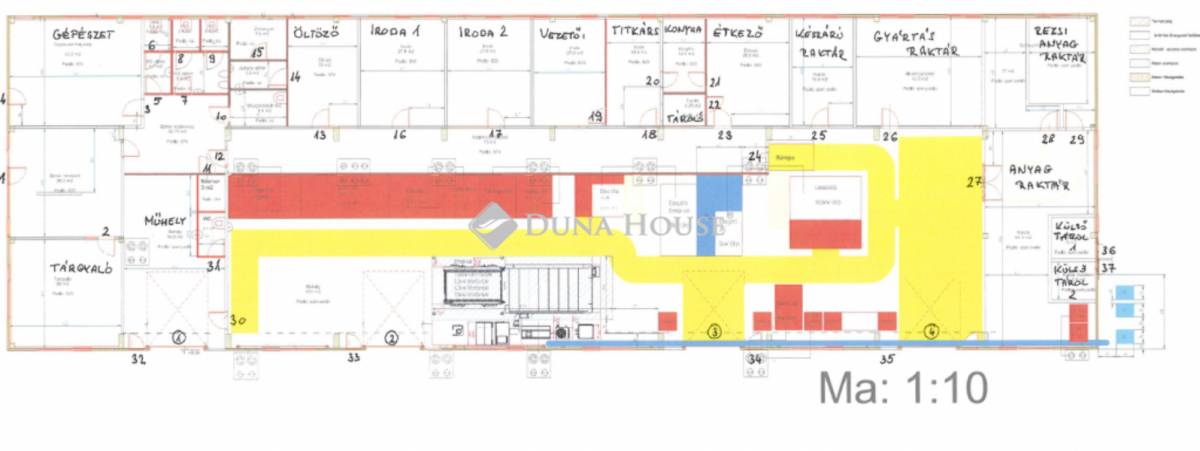 Az eredeti épület az 1970-es évek elején épült vb. kehelyalapozáson, vasbeton vázszerkezettel. 2022-2023-ban az épület teljes felújítása valósult meg. A homlokzati panelek elbontása után az épület új szendvicspanel borítást kapott, az épület DK-i oldalán 1 m magasságig hőszigetelt beton térdfal található. A tető vasbeton szerkezetű lapostető, hőszigetelt, kőzetgyapot PV2 borítással. Nyílászárói műanyag szerkezetűek hőszigetelő üvegezéssel, valamint szekcionált motoros ipari kapu. Hűtése és fűtése levegő-víz hőszivattyúval, fan coil hőleadókkal megoldott, melegvíz ellátása villanybojlerről történik. Padlóburkolatok ipari betonpadló, míg az iroda és szociális helyiségekben greslap. A belső falfelületek gipszkartonnal burkoltak, festettek. A mennyezet gipszkarton álmennyezettel elburkolt. Az épület víz, villany, szennyvíz közművel ellátott, a felújítás során a teljes vezetékrendszer cseréje megtörtént. Az épületben led világítás, kamera-, riasztó- és kártyás biztonsági beléptető rendszer található. 2024-ben 50 kwp napelem rendszer telepítése valósult meg. Állapota: jó, újszerűen felújított.