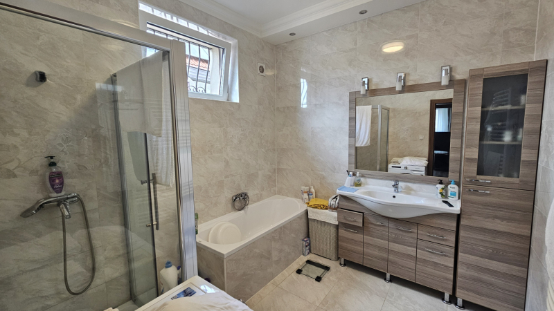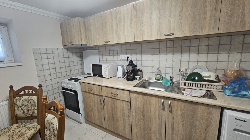 Szuterén szint: 45 m²-es különálló lakrész szaunával, saját konyhával és fürdőszobával – a főépületből és az udvarról is megközelíthető