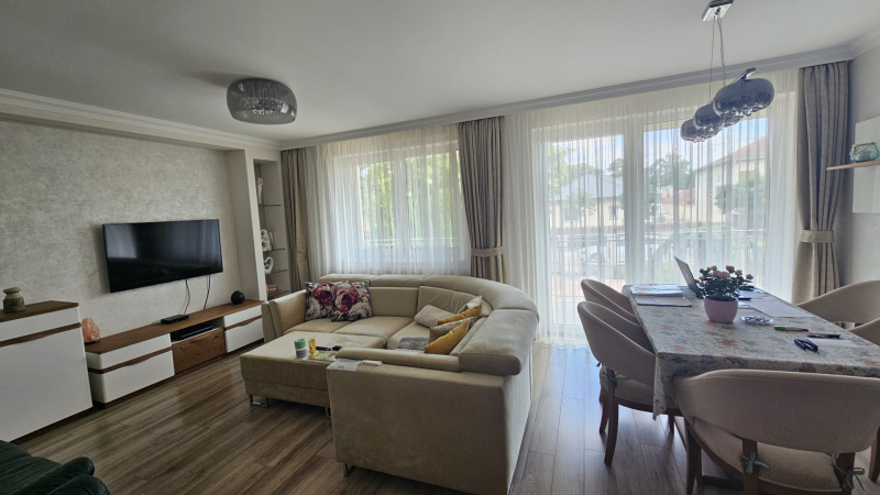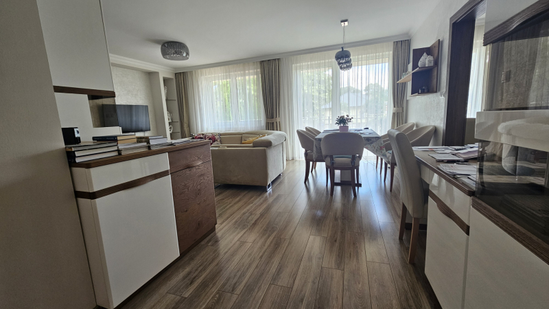 Tulajdonosi lakrész: kb. 100 m²-es, 2 szobával, amerikai konyhás nappalival, kamrával, fürdőszobával (kád és zuhany is), külön WC-vel